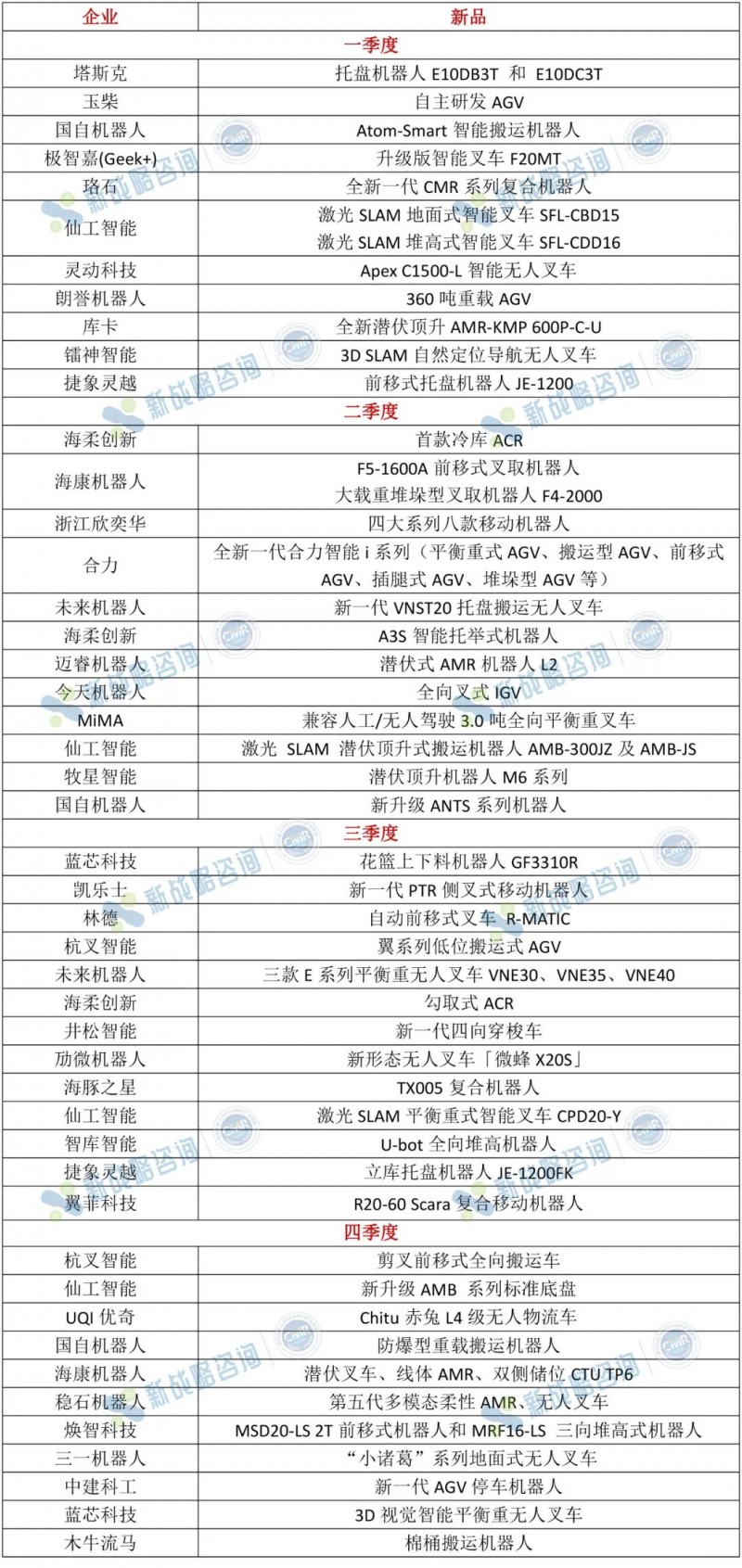 表:2023年AGV/AMR行业新产品(根据公开信息整理,如有未完善之处,请指正!)