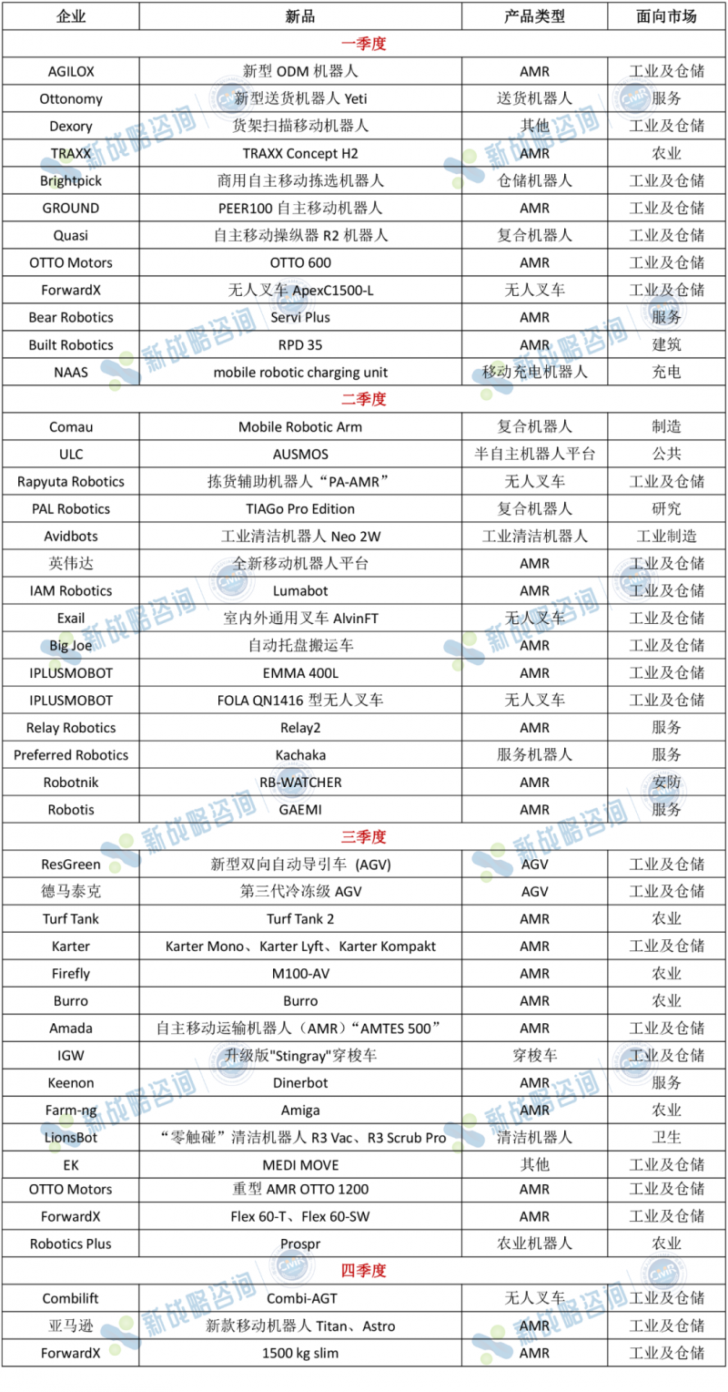 表:2023年国外移动机器人新产品(根据公开信息整理,如有遗漏,请指正!)