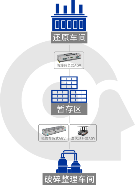 国自机器人针对其生产车间存在安全隐患、生产车间通道狭窄、工序复杂、原料及成品体积和重量大等痛点,为其多晶硅生产还原和整理车间提供智能物流搬运解决方案,使用多台防爆型背负式AGV、辊筒背负式AGV、潜伏顶升式AGV,连通还原车间、破碎车间与清洗车间,实现多晶硅原材料、空料框、成品硅棒、破碎硅料的智能搬运和存储。