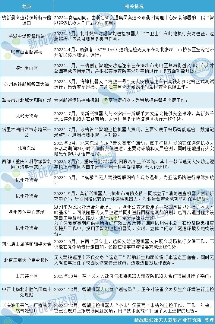 表格2:2023年国内部分安防巡检机器人落地应用项目情况