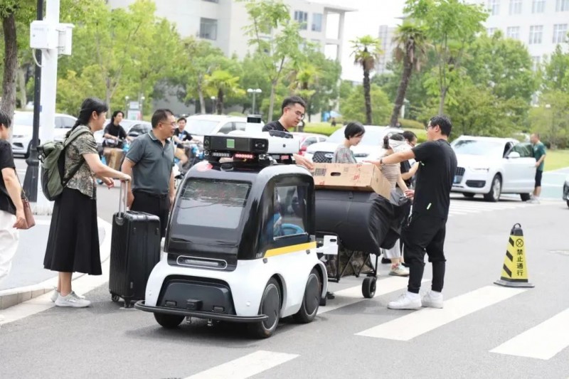此外,还有通过在安防巡逻车后加挂拖车的方式增添货运功能。如去年金秋大学开学之际,北京工商大学良乡校区的无人驾驶巡逻车变身“运送工”帮助新生和家长将行李运送至宿舍。