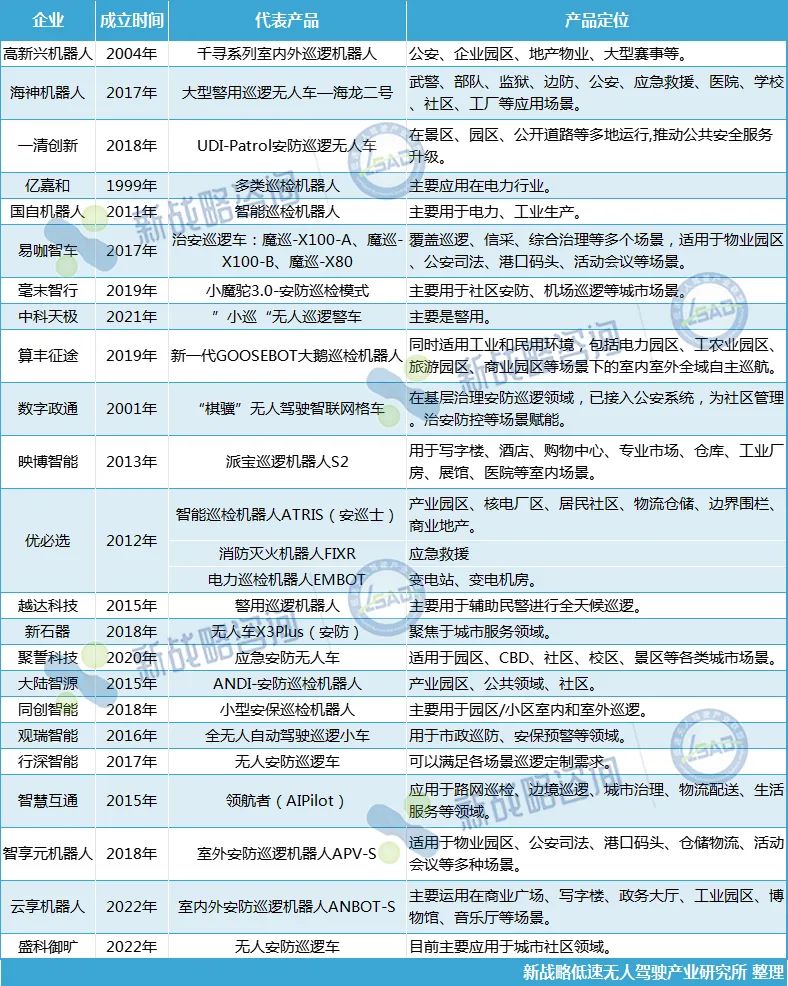 表格1:国内部分安防巡检机器人企业及产品相关情况