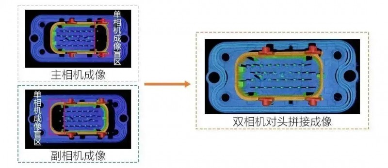 方案优势:通过两台DP2120并排拼接,在保证精度的基础上增大视野范围,单次扫描即可测量平整度,提高了检测节拍