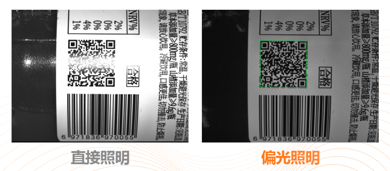 1.刻印深度浅,对比度极低:复合光源配合特殊打光角度,提升条码对比度;