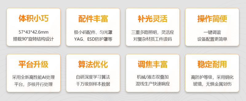 2.高速读码 → 全新优化照明系统+AI读码算法,满足小曝光高节拍读码场景。