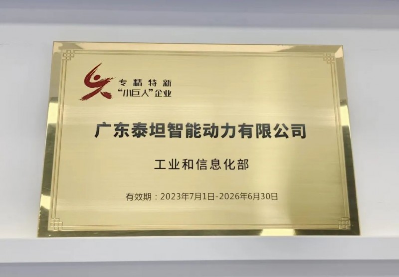 喜报!广东泰坦智能动力荣获国家级专精特新“小巨人”企业荣誉称号