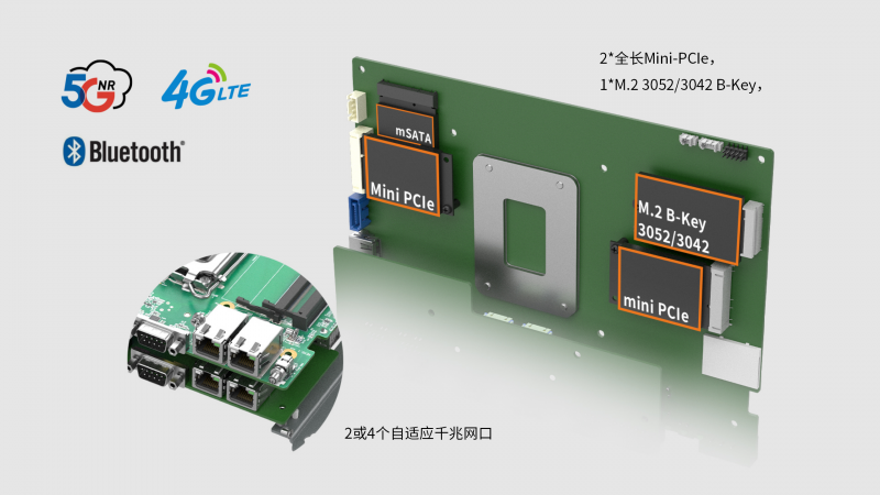 ² 1*M.2 3052/3042 B-Key,带SIM卡槽,带PCIeX1和USB2.0信号,支持5G NR模块