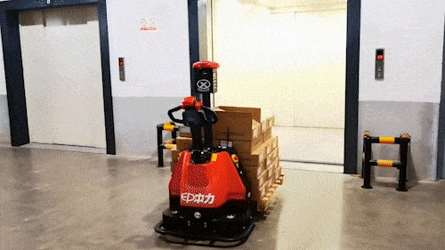 中力自动搬运车全程自动高效配送,无线通讯自动呼叫电梯,安全乘梯,进而避免人工等待,碰撞电梯损坏货物等,极大提升搬运效率,重塑智能高效物流。