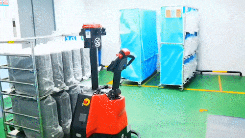 中力自动搬运车平稳叉取电箱,自动配送,安全乘梯,突破楼层空间限制;并且该车手自一体设计,可一键切换成自动搬运或人工操控的电动搬运车,实现人车高效配合,作业更流畅、更高效。