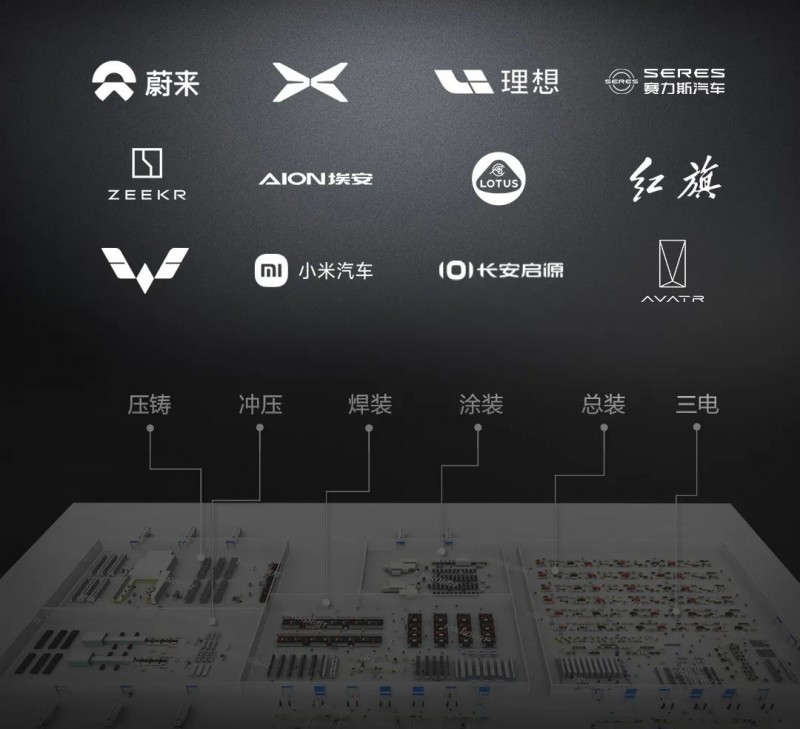 目前,海康机器人已助力蔚来、小鹏、理想、赛力斯、极氪、埃安、路特斯、红旗、五菱、小米、启源、阿维塔等大家耳熟能详的新能源汽车品牌,在冲、焊、涂、总、三电等车间推行智能制造。