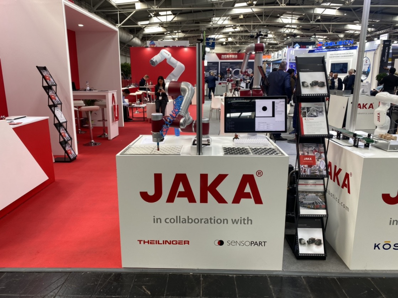 Command Interface)标准的新应用重磅亮相德国汉诺威工业博览会(以下简称汉诺威工业展),并同OnRobot、Schweiger、OrbitalService、Nexos、Theilinger等“JAKA+生态圈”合作伙伴联袂带来码垛、上下料、焊接等典型工业场景解决方案。向世界展示节卡机器人自我蝶变及工业自动化的全球布局和实践。展会首日,节卡机器人高光不断,并受到了中央电视台栏目组采访。