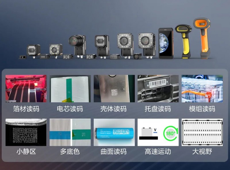 追溯锂电生产过程是数智化解决方案的重要一环,海康机器人由此推出了丰富的智能读码产品,轻松应对多底色读码、圆柱电池曲面读码、高速运动读码、大视野读码等复杂场景。