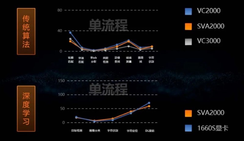SVA2000利用硬件平台的异构特性对软件架构和算法效率进行了深度优化,在4相机应用场景下,它的性能可以对齐桌面级CPU和GPU,能够满足大部分多相机视觉应用的节拍要求。