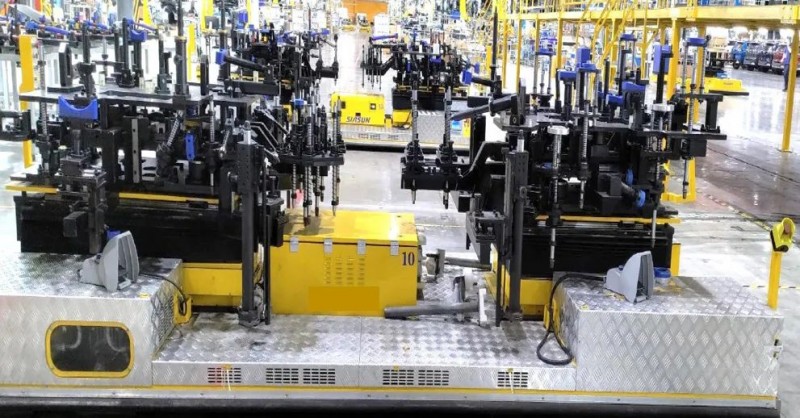 在该项目中,新松底盘合装移动机器人同时肩负两大日系品牌汽车的底盘合装作业任务,机器人运用动态随行技术,实现与车身的自主跟随和同步,可以根据用户工艺需要对机器人线路灵活调整,进一步提升生产柔性,满足日系车厂严谨的工匠精神和对生产设备的严格要求。