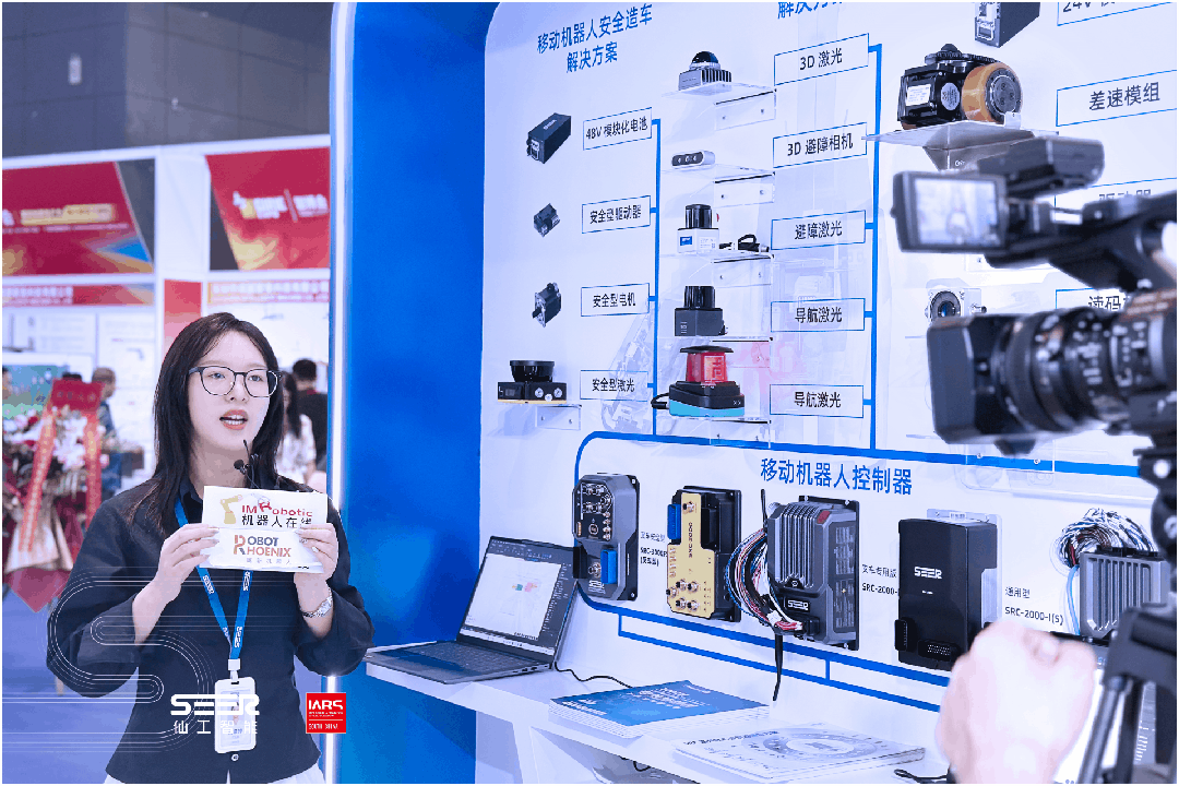 开展首日,行业主流媒体机器人在线和工控网现场对话仙工智能市场部总监龚紫婷,并跟随直播镜头展示了仙工智能的移动机器人产品和最新技术方案。