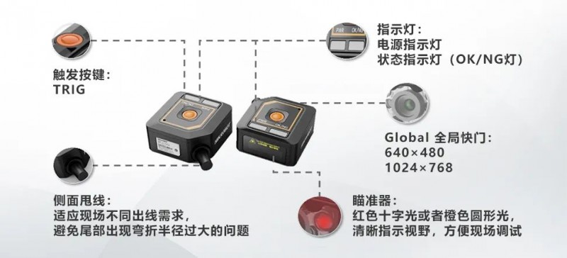 产品搭配30W和80W两种分辨率,兼顾检测效率和精度。机身自带常用指示和调试按钮,便于交互调试。