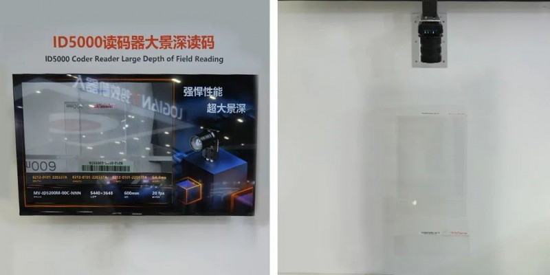 选用6百万分辨率的高性能Sensor,成像质量优异,内置深度学习读码算法,具备大视野低分辨率条码读取能力,可稳定识别0.85个PPM的一维码和2.5个PPM的二维码。现场展示的48个药盒一维码,ID5000只需0.5秒即可完成全部读取,效率大幅提升。