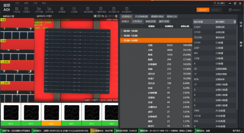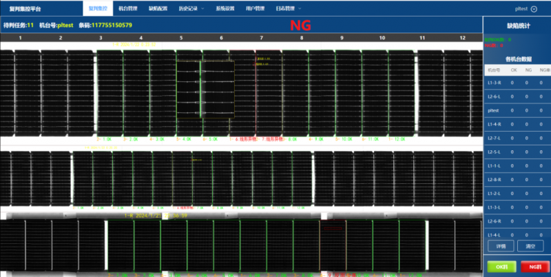 为了更好地追溯电池组件的全流程质量,海康机器人定制开发了光伏组件决策看板,从单站检测到各个机台的集控复判,整个工厂的数据汇总、运行状态一目了然。
