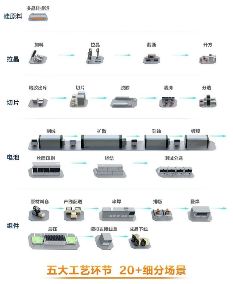 目前,海康机器人已打造覆盖光伏五大工艺环节20+细分场景的方案,驱动光伏产能与品质双升级。
