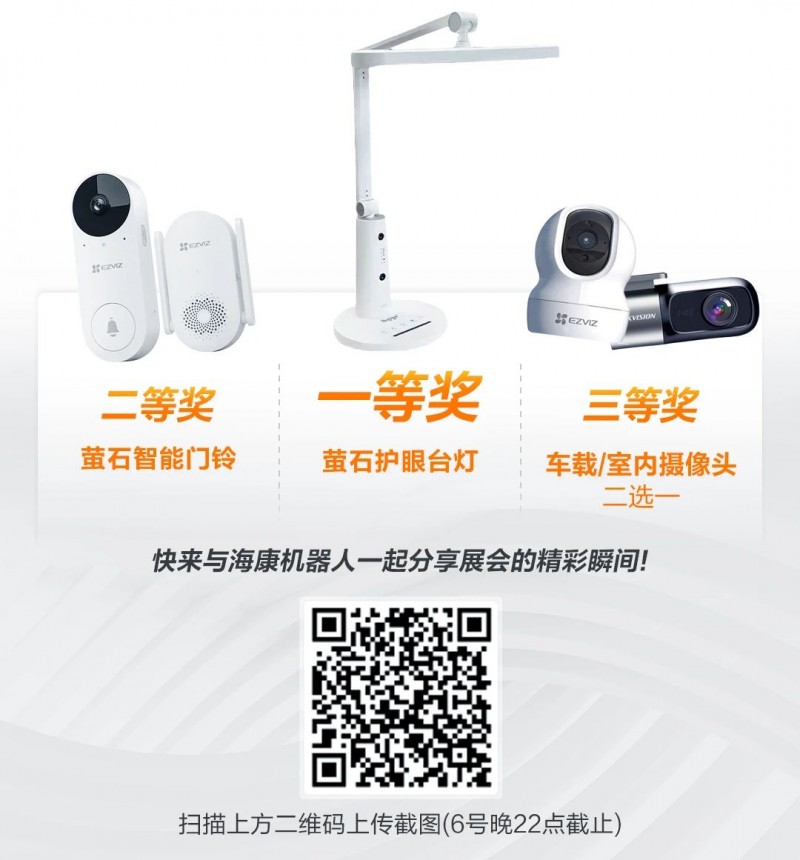 拍抖音,赢大奖!7月3-5日,在抖音上发布与海康机器人汽车展相关的原创视频,参与话题:#海康机器人、#汽车制造、#上海汽车装备展/AMTS,并在7月6号晚22点前扫描二维码上传视频阅读量截图,即可领取周边礼品一份,更有丰富大奖等您来拿!