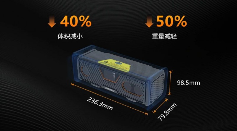 新一代激光振镜立体相机全系列采用轻量化设计,以小视野高精度的DLS300P为例,相机的体积减小约40%,重量减轻约50%。在臂载式安装(Eye in Hand)应用时,能够有效减轻机械臂末端负载,提升系统可达性,满足更广泛的应用场景。