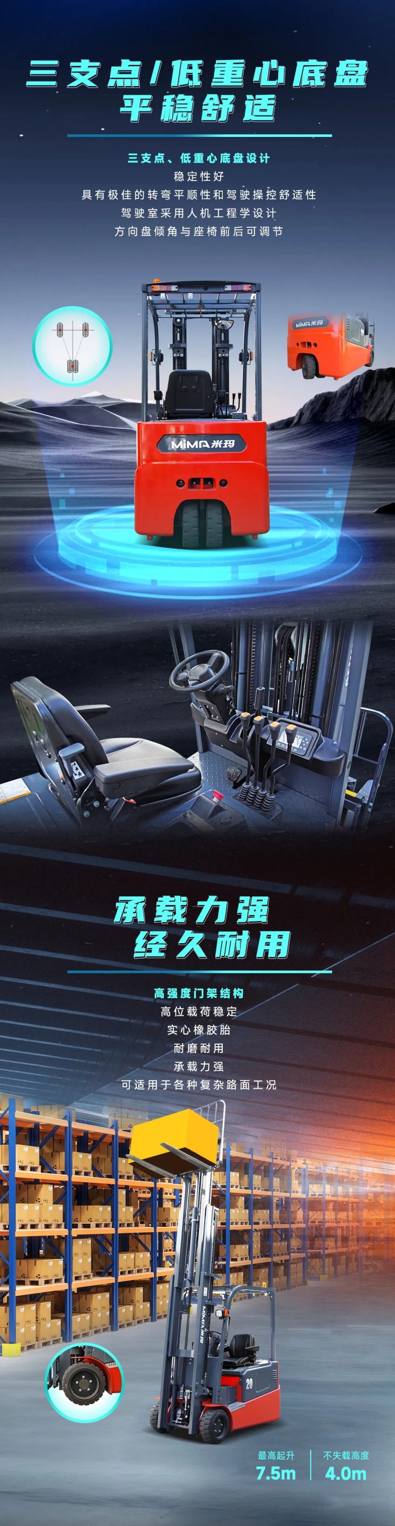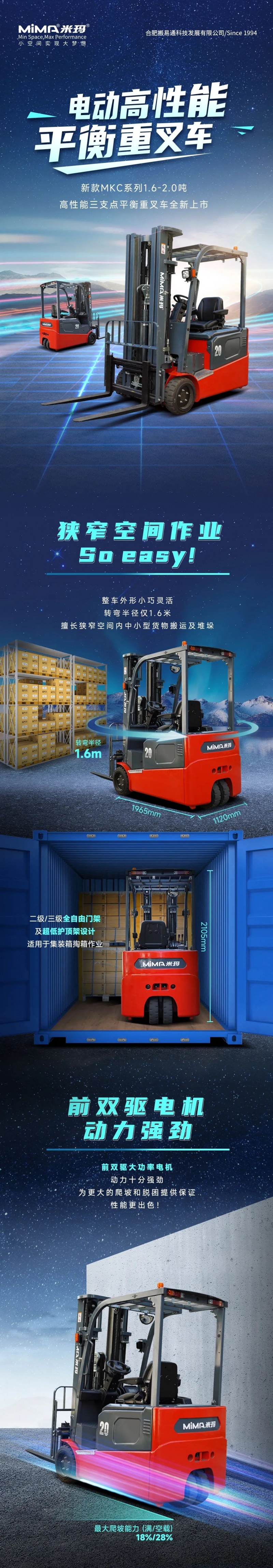 狭窄空间作业超City! MiMA米玛1.6-2.0吨高性能三支点平衡重叉车全新上市!