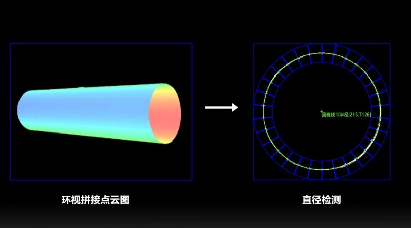 相比传统游标卡尺/测径仪的测量方式,环视拼接可实现物料在线、非接触式直径测量和表面缺陷检测;相比单轮廓传感器方案,获取信息更加全面,效率更高。
