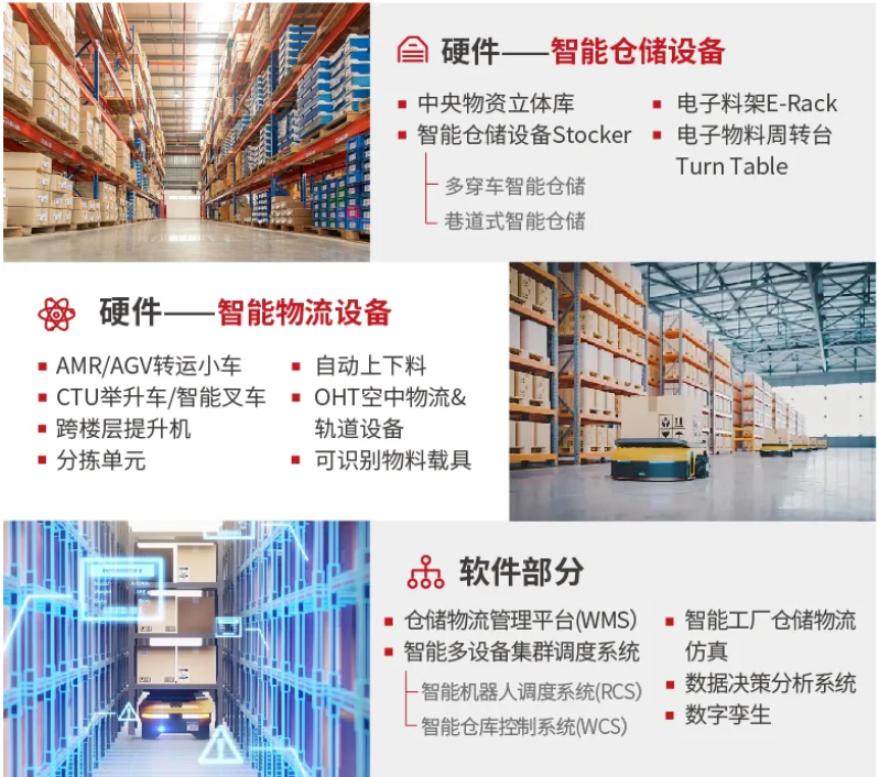 通过WMS、WCS、RCS等仓储物流软件系统,结合智能仓储设备、智能搬运设备、设备自动化及数字化改造等,为客户提供贯穿厂内生产全流程的生产智能化、设备自动化、数据可视化解决方案,有效实现产品加工过程的无人化配送,打通从仓库到生产制造的“堵”点,助推制造业智能化转型升级。