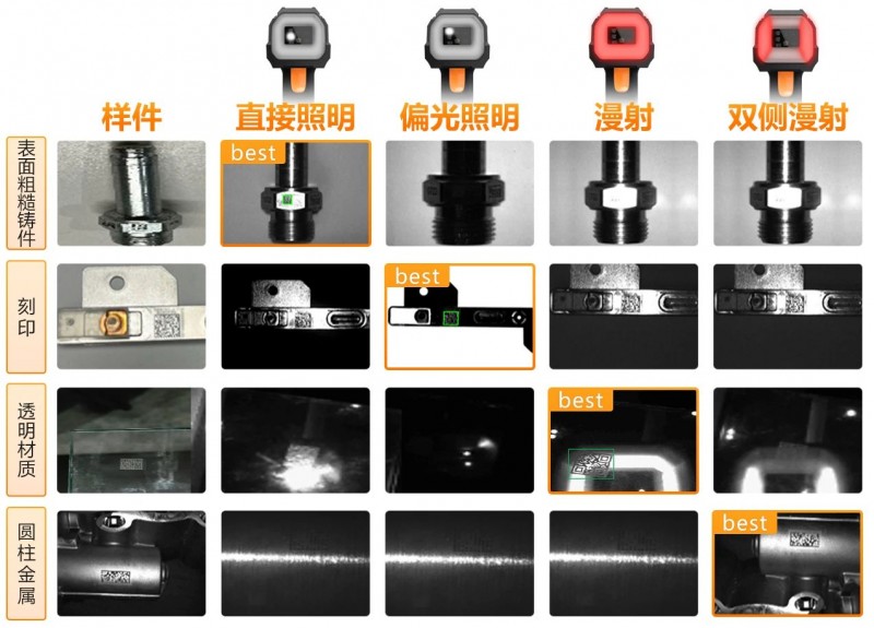 IDH9000集成直接照明、偏光照明、漫射、双侧漫射四种照明方式,打破打码材质、工艺、外形、表面处理等限制,准确识别传统设备无法识读的目标,轻松面对各类材质和场景。
