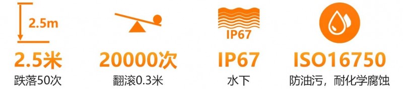 在耐用性上,其全包胶设计确保了产品能够承受从2.5米高处的50次跌落及0.3米高度的20000次翻滚,树立了行业新标杆。