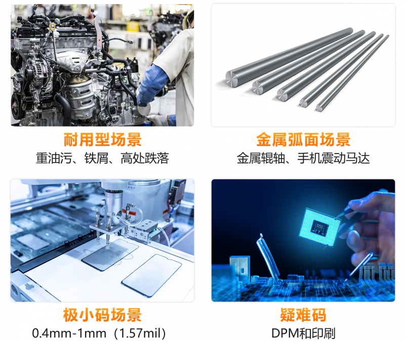 随着制造业信息化程度逐渐加深及追溯系统精细化,市场频现疑难码读取挑战,如微小、反光(阴阳码)及圆柱金属DPM码等。海康机器人充分利用AI深度学习的技术优势,采集大量样本进行训练,提升读码识别率与效率。
