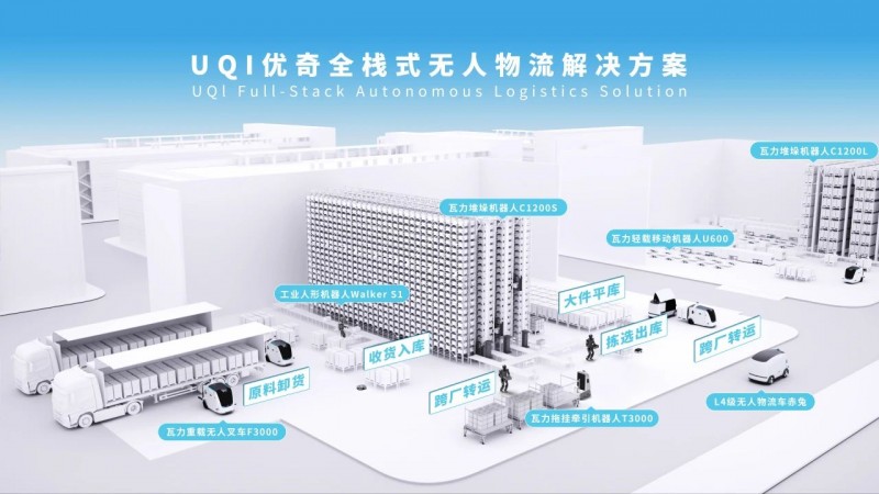 一个典型的生产物流场景贯穿了原材料卸货、入库、仓储、分拣、出库并配送至生产车间,加工成成品后,成品入库、仓储、分拣及出货等多个场景,涵盖了物料的存储、分拣、搬运和配送四大功能。如何实现全流程无人化,尤其是各流程之间的自动化无缝衔接,一直是行业痛点。UQI优奇此次推出“硬件+软件+服务+运营”的全栈式无人物流解决方案,具备AI赋能、真无人、高柔性三大特点,通过多模态大模型、视觉算法和语音技术等多种AI技术赋能,可一站式柔性调度多种设备及机器人的协同作业,快速实现物流场景布局调整、扩建、升级等需求,真正完成无人物流的闭环。