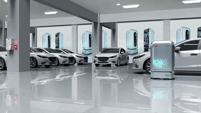 车主可通过手机端充电APP一键下单,为汽车充电,系统接到充电任务1秒级响应并指派充电机器人前往泊车位。