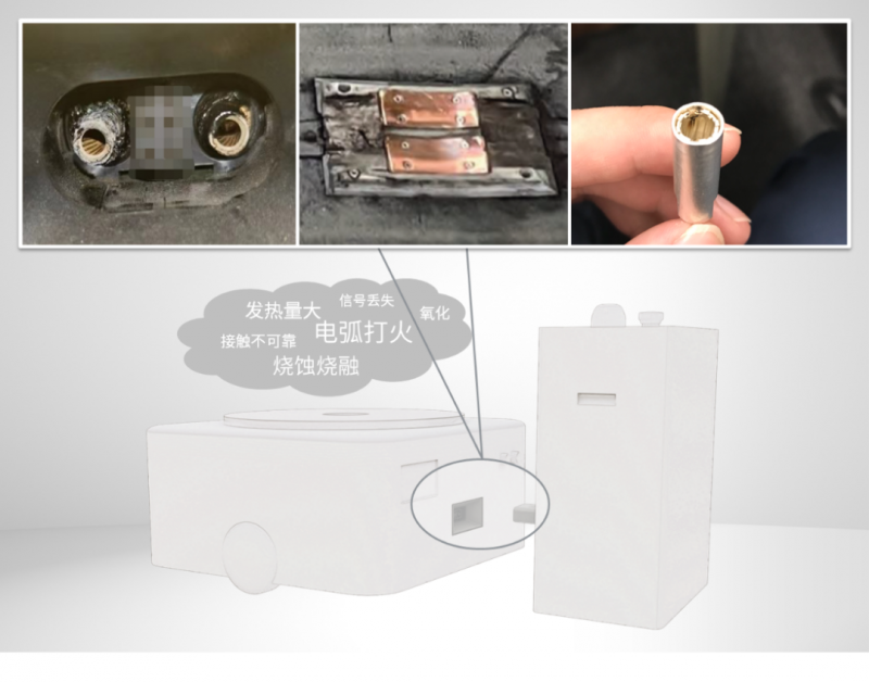 移动机器人频繁充电时,若充电连接器无法适应高插拔工况,随着插拔次数增加,连接器表面磨损加剧,镀层和基材受损,接触电阻上升。磨损到一定程度发生接触失效,接触电阻会急剧增大,引发高温发热,带来电气安全风险。