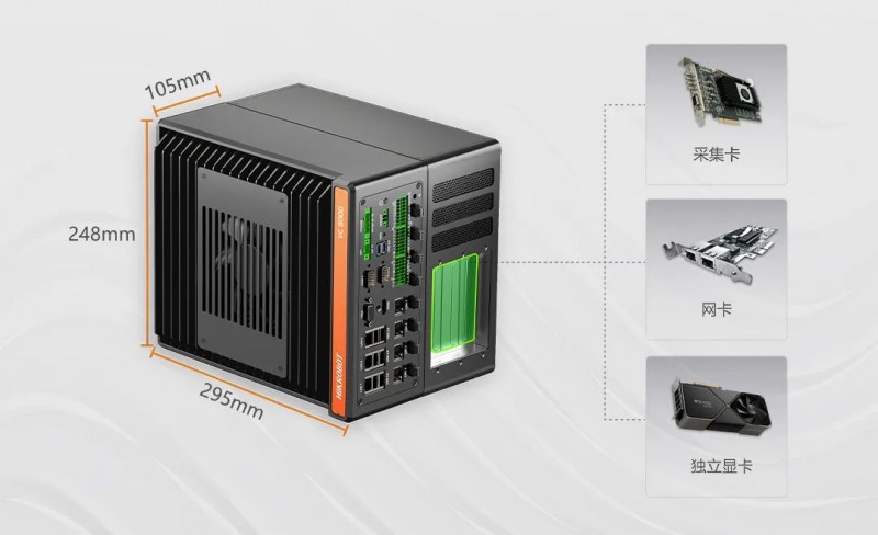 VC5x2x系列拥有4*PCIE扩展卡槽,支持扩展各类板卡、高性能显卡和AI加速卡,用户可依据自身需求,灵活配置所需板卡,最大支持扩展双槽4070显卡,实现强劲的图形处理和 AI 运算能力,深度学习模型可直接在设备端运行。