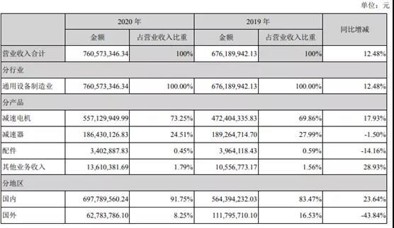 从年报来看,中大力德2020年国内业务收入6.98亿元,同比增长23.64%;国外业务收入0.63亿元,同比下滑43.84%。境外业务下滑明显,主要原因是疫情原因高毛利率的海外订单收到影响,公司海外业务占比从19年的16.53%下降到20年的8.25%。