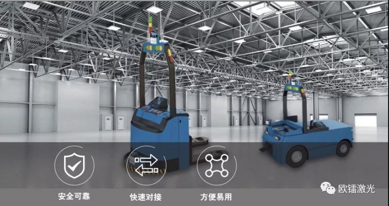 伴随着AGV行业技术的不断发展,国产激光雷达技术也越来越成熟;欧镭激光作为国产激光品牌的领导者,针对工业场景下的AGV自然导航和安全防护的应用需求,以激光雷达为核心组件,推出从激光导航、托盘定位到整车安全防护的全系列激光雷达组合方案,大大节约了传统AGV智能化升级改造的硬件成本,又提升了整体系统的完整性和可靠性。