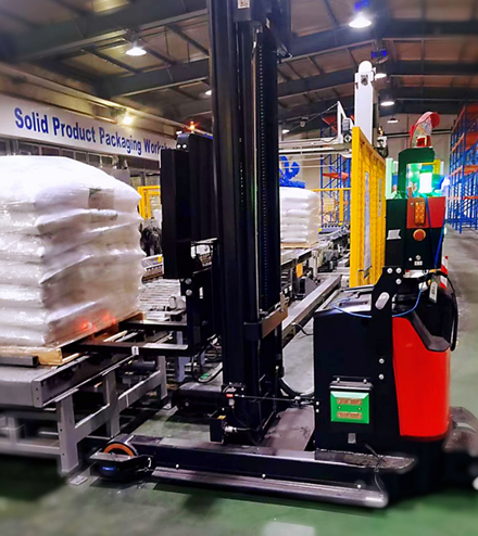 该项目客户为韩国资本在中国的化工外企,杭叉智能通过整合机械臂、输送线、穿梭车、打包机以及WMS等软硬件,结合自身新款堆垛前移车进行项目规划,充分发挥车辆小巧灵活,对于空间需求进一步缩小的优势,配以锂电快充大容量的特点以及5G通讯技术的巨大优势,因地制宜,在较短的时间内完成实施并将项目投入使用,完全替代了原先人工车的作业模式,达到了机器换人的目的,实现整体物流智能化。