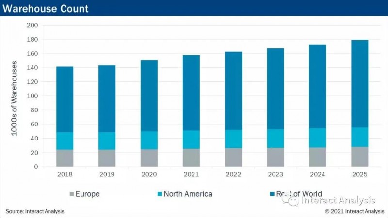 截至2020年底,15万个仓储遍布全球,占地约250亿平方英尺。疫情以及发展中地区人们对于消费品的需求推动了人们选择线上购物,因此未来五年需要增加28500个仓储中心。这些新仓储中有相当一部分是直面消费者的配送中心,这些配送中心需要投资大量劳动力和自动化设备。