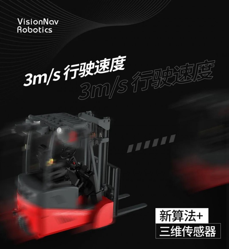 车头方向:采用3D激光+视觉的感知方案,感知距离和视野得到大幅提升,确保100%安全的情况下,VNP20具备目前无人叉车最大行驶速度3.0m/s。同时,通过对障碍物目标的深度学习和分类,可实时判断并进行自主绕障。