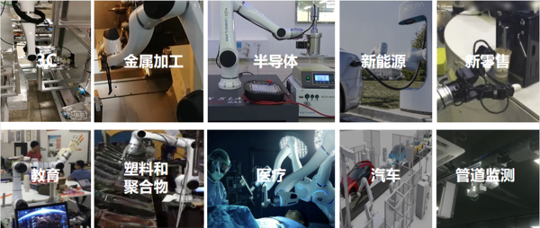 其中,Elfin系列协作机器人主打高性价比,负载范围包括3kg、5kg、10kg及12kg,已广泛应用于装配、拾取、焊接、研磨、喷涂、点胶、机床上下料等工业领域以及医疗、零售等非工业领域,并成功出口到包括欧美日韩在内的50多个国家和地区。