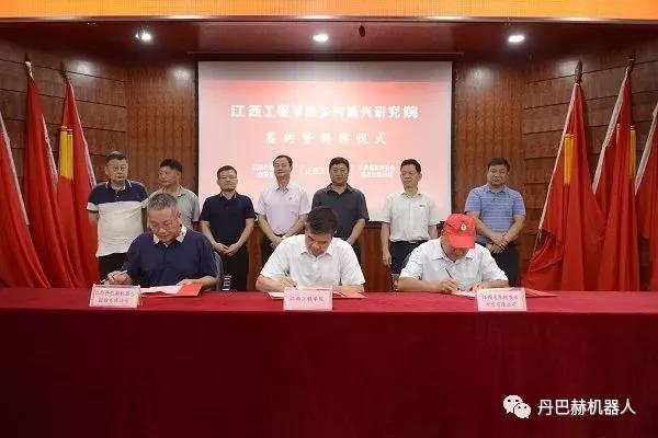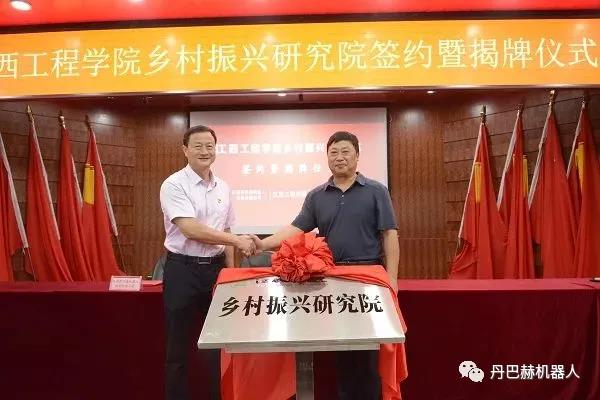 随后,江西丹巴赫机器人股份有限公司与江西工程学院、江西东树农业科技发展有限公司签署了合作协议,并由江西省科技厅领导共同为乡村振兴研究院揭牌。
