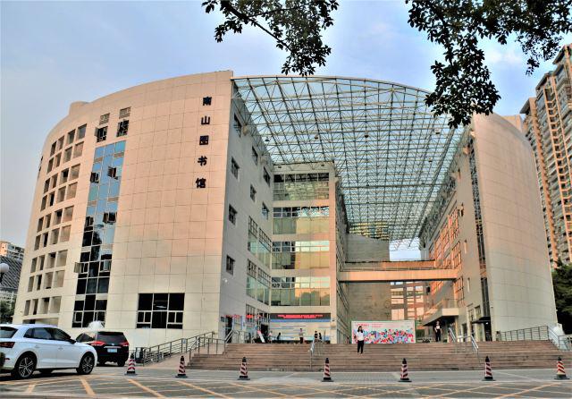 深圳南山图书馆,是深圳南山区标志性的文化建筑之一。图书馆占地面积13700平方米,馆舍建筑面积16400平方米,阅览座席900多个。它犹如都市生活中的“世外桃源”,在这个喧哗而快节奏的城市中为读者保留一份悠然与宁静,为城市中疲惫了一天的人们提供一处憩息之地。同时,在国内图书馆的数字化、智能化的发展中南山图书馆是起步较早、起点较高的代表之一。