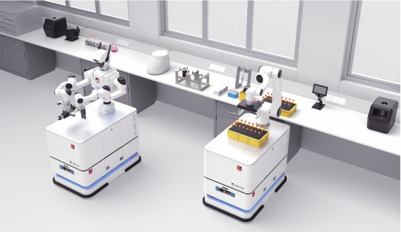↑图为墨影移动协作机器人在生化实验室应用场景