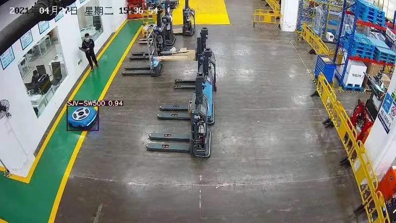 RoboView Server 实时采集监控视频中的图像,并对图像中的人、货物和 AGV 进行目标检测和目标跟踪,将人、货物和 AGV 与特定的规划区域进行绑定,形成具有业务逻辑的决策信息,实时分析人员在作业场景中的行走路径、AGV 的运行轨迹以及区域内所有的库位状态等,最终通过仙工智能标准的 API 发送到上层系统,如总控系统、调度系统或其他显示系统等以完成更高级语义的任务。