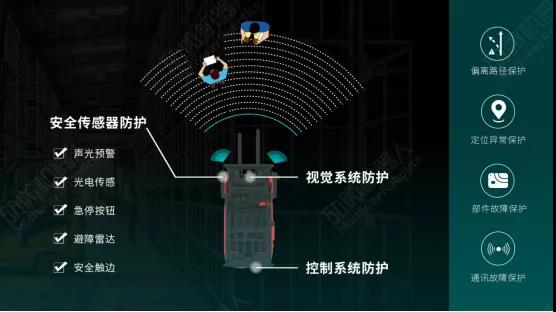平衡重式无人叉车MW-E系列安全系统采用安全传感器、算法控制系统、视觉系统等多重防护去提升车辆安全,即从人体工程学等多方面去考虑人机交互场景的安全性,又从无人叉车系统、机械等方面去考虑,360°全方位立体防护,让无人叉车作业安全更具保障。