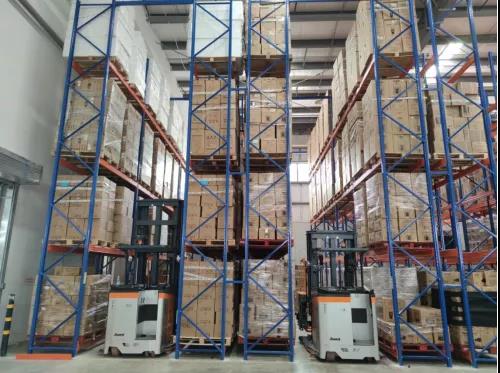 此方案中,使用的卓一三向堆垛车VDA11675,巷道宽度仅需1650MM,跟传统的堆垛车相比可以减少约1150MM的通道距离出来,整个仓库规划下来可以多出多排货架,极大的提高了仓库的存储库位数,提升了整体的存储效率。