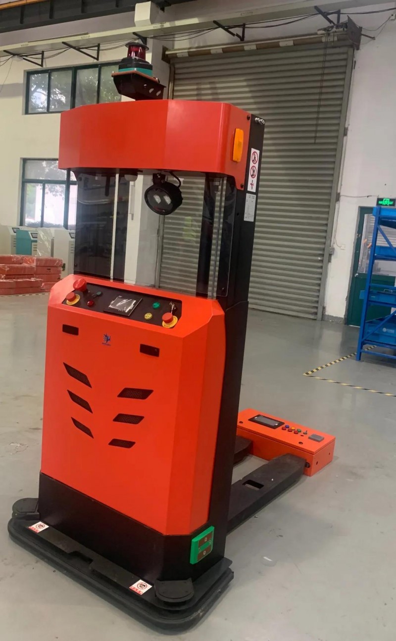 窄通道三向AGV外,在一些不需要高位存储的场景,AGV厂商们与传统的叉车厂商合作,通过对车体小型化、轻量化的设计,减小车体的转弯半径,推出了窄通道前移堆垛AGV,这类产品的举升高度一般在1.6m左右,工作通道在2m左右。主要面向线边运输、低位上料、仓储管理等场景应用。