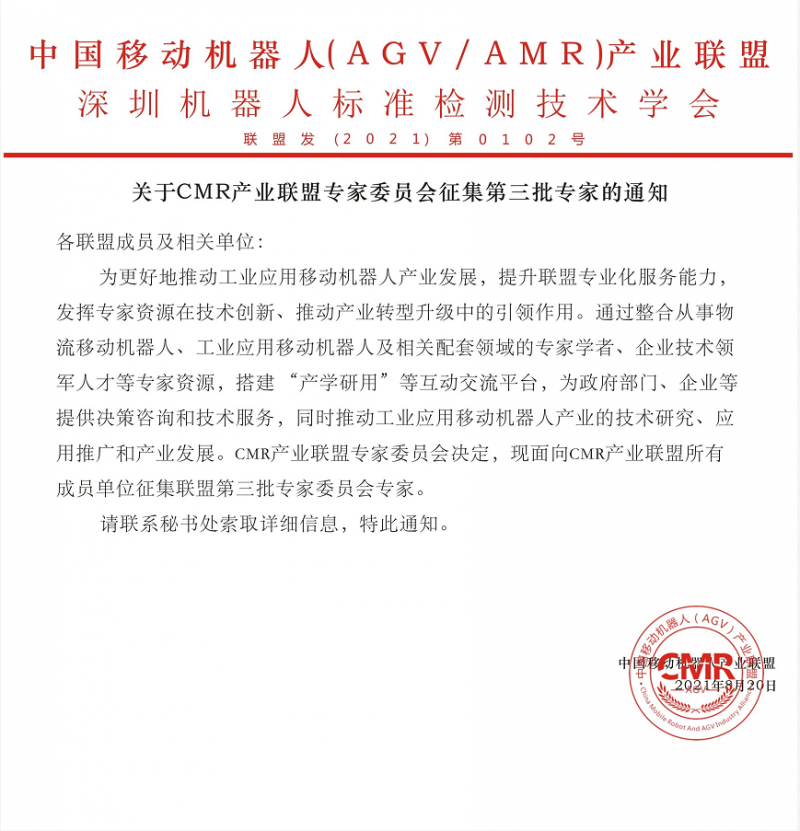 核心提示:中国移动机器人(AGV/AMR)产业尊龙凯时专家委员会征集第三批专家的通知
