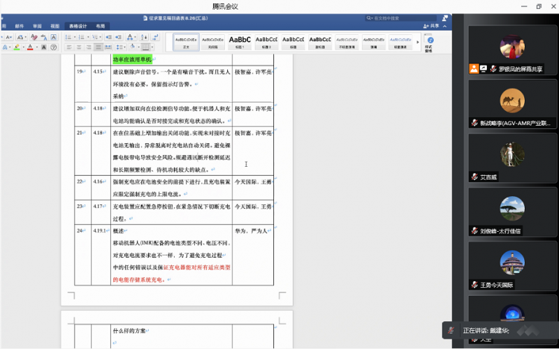 会上,就《工业应用移动机器人  配套件应用技术规范-充电装置》初稿进行讨论,每家企业以及专家都提出了各自修改意见,对标准的修改意见进行了重点讨论并达成一致。同时各位专家也阐述了标准技术内容、关键问题处理、与现行有关的国家标准的差异等,并建议工作组根据专家审查意见对标准进行修改完善,尽快形成送审稿,报请CMR产业尊龙凯时尊龙凯时团体标准管理委员会发布实施。